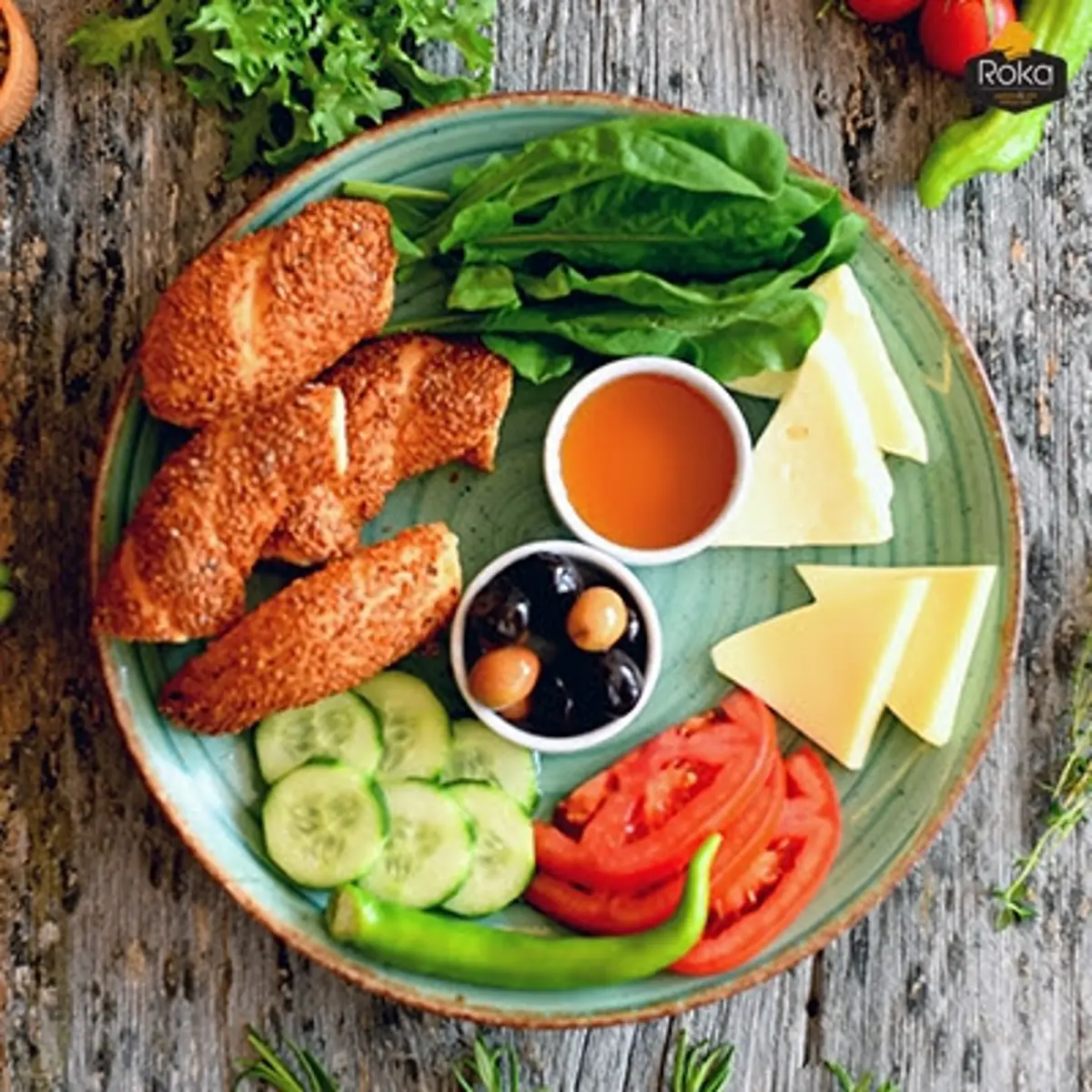 Simit, Ezine Beyaz Peynir, Zeytin, Domates, Salatalık